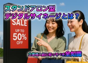 はじめに 企業やオフィスでの情報発信手段として、デジタルサイネージの導入を検討する担当者の方は多いのではないでしょうか。しかし、いざ導入を検討すると「どのような種類があるのか」「自社に最適なタイプはどれか」といった疑問が … 続きを読む スタンドアロン型デジタルサイネージとは?企業導入前に知っておくべき全知識